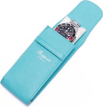 A single watch pouch designed in grained leather with a soft suede insert to protect your watch.