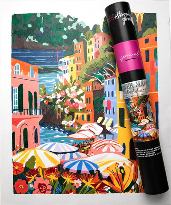 Flower Market: Portofino is a Mediterranean daydream — a whimsical escape to the Italian Riviera where striped umbrellas dot the coastline, sailboats float on sapphire waters, and sun-washed buildings bloom with flowers. It's bold. It's vibrant. It's vacation on canvas — and part of our unforgettable new Flower Market Collection.