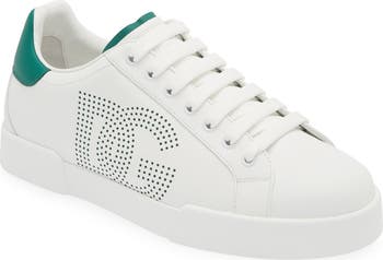 This sleek leather sneaker kicks your casual ensembles up a notch with perforated and debossed logos and color pops trimming the tongue and heel cup.