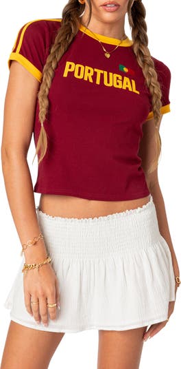 EDIKTED Portugal Ringer T-Shirt, Alternate, color, Burgundy