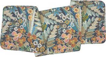 Posy table linens feature a charming array of artistically depicted flowers set against a rich indigo backdrop, evoking a picturesque meadow. Radiant dandelion yellow, modern melon orange, and elaborate succulent green harmonize with the complementary hues in this print to imbue a timeless allure, perfect for year-round tabletop decoration. Flip it over to reveal a soothing soft green ditsy botanical print, offering even more styling possibilities.
