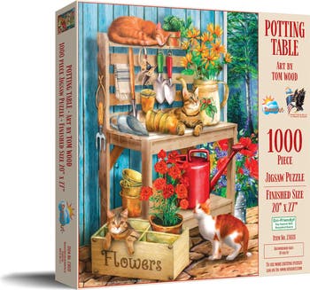 Immerse yourself in the captivating and enchanting world of nature with the Potting Table 1000-piece jigsaw puzzle, complete with artwork by renowned artist Tom Wood. Blending the charm of rustic potting tools and playful cats, this vibrant masterpiece provides both joy and serenity. At a finished size of 20" x 27", it transforms from a leisure activity into a display-worthy work of art. Precision and quality are paramount with SunsOut’s expertly crafted interlocking design, promising a smooth assembly journey from start to finish. Each puzzle piece is made from durable, high-quality recycled cardboard, sourced sustainably to align with SunsOut's dedication to eco-friendly practices. The use of soy-based inks and recycled board supports ecological mindfulness while also delivering on vibrant colors and durability. Moreover, SunsOut, a proudly woman-owned small business, manufactures all its puzzles within the USA. A worry-free guarantee underpins SunsOut's commitment to quality, ensuring a seamless puzzle experience with prompt resolution to any issues with missing or damaged pieces. This 1000-piece jigsaw puzzle, specifically designed for adults, combines elements of animals and nature for a stimulating yet calming experience, making it ideal for relaxing or bonding with loved ones. Add Tom Wood’s Potting Table to your collection and experience the intricate delight of high-quality craftsmanship.