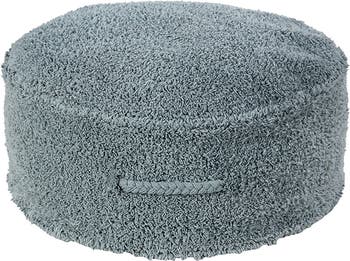 Round Pouf from our bestselling Chill collection, now available in multiple colorways: Chestnut, Honey, Natural, Pearl Grey, Vintage Blue, and Vintage Nude. Each pouf features soft rug pile on the top and sides, a cotton canvas base, and a handmade cotton braid handle in matching color. The cover is removable with a zipper for easy washing, and the inner filler is made of lightweight polystyrene pearls for comfortable seating.