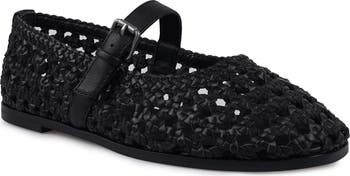 Intricately woven leather adds textural intrigue to a classic ballet flat secured with an adjustable mary jane strap.
