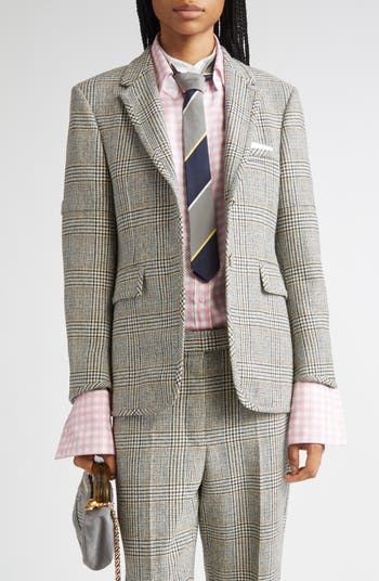 From the fall '25 collection steeped in countryside nostalgia comes this Italian-wool tweed blazer that plays up the theme with preppy glen plaid borrowed from traditional English hunting costumes. Buttoned straps let you cinch and release volume into the sleeves.