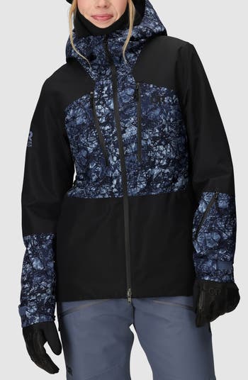 Shred the slopes in a waterproof ripstop jacket fully loaded with ski-friendly features like core-mapped insulation, a helmet compatible hood and a forearm pass pocket.
