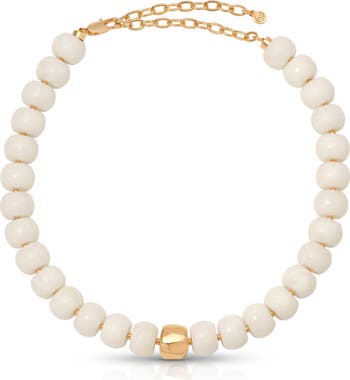 Reconstituted Stone beads bring a glossy shine to this statement necklace finished with 18-karat gold accents.