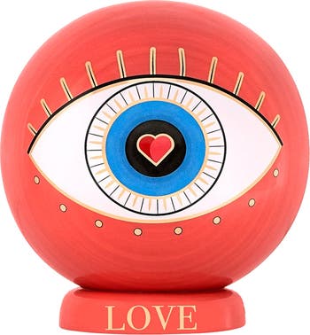 In both the giving and receiving of love, you find true peace. Our artisans crafted this Ceramic statue to invite the properties of two powerful symbols - the Evil Eye and the Heart. The Evil Eye keeps you protected while the Heart showers you with affection and warmth. Place this pink and red statue in the home or office to attract romance, compassion, and abundance.