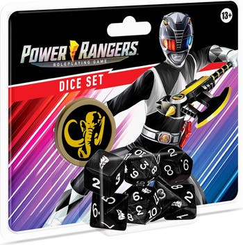 This 8-piece dice set is what every Ranger needs to be a hero in the Power Rangers Roleplaying Game! Specially designed for the Power Rangers Roleplaying Game, these morphinomenal dice will help you conquer your foes and protect Angel Grove and beyond! Each set includes: 2 d20 , 1 d12, 1 d10, 1 d8, 1 d6 , 1 d4 , 1 d2 “Power Coin” For use with the Power Rangers Roleplaying Game. Features: 8-piece custom dice set for us with the Power Rangers Roleplaying Game Includes a custom d2 “Power Coin” with a zord on one side and Ranger Helmet on the other. Conquer your foes and protect Angel Grove and beyond with custom dice! Collect all 6 sets, one for each ranger color!