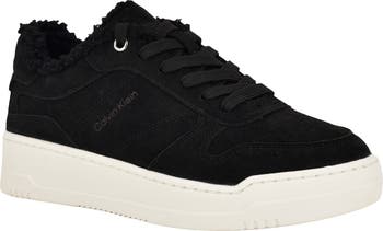Plush faux-shearling trim provides a cozy-chic finish for this smooth suede lace-up sneaker.