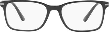 Angular frames enhance the contemporary edge of Italian-made optical frames complete with logo-etched temples.