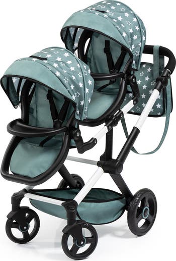 - PUSH YOUR DOLL IN STYLE: The Xeo Twin Doll Pram is designed for dolls up to 18" (46 cm). Transport your favorite doll, plush, or stuffed animal in style! The stroller has a lovely green and white stars design that your little ones are sure to love!