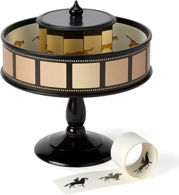 Before the silver screen was a part of our regular entertainment roster, motion picture had another meaning. Just give this colorful carousel a spin and you'll see just we mean. Inspired by French inventor Emile Reynaud's 1877 praxinoscope, the animation viewer brings images to life through an optical illusion.