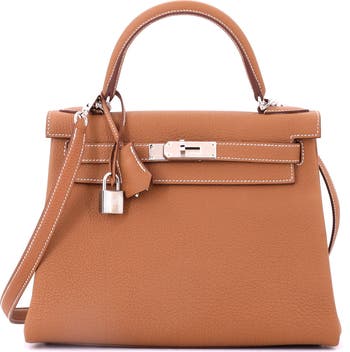 Kelly Handbag Brown Togo with Palladium Hardware 28