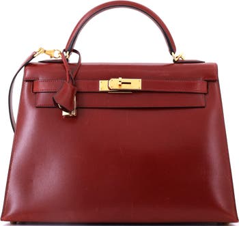 Kelly Handbag Red Box Calf with Gold Hardware 32
