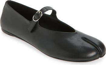 Bring modern flair to your office and off-duty looks in this ballet-style mary-jane flat with an avant-garde split toe.