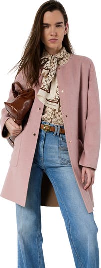 The reversible two-tone coat in fine wool, one of Darel's signature pieces, featuring a timeless, classic color and a contrasting pop of color for the upcoming spring season. With a straight cut and no collar, it presents a sleek and contemporary line.