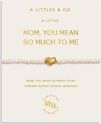 Timeless, thoughtful, treasured. The Precious Moments Collection sees a shining gold-tone plated charm nestled between row of lustrous freshwater pearls and wrapped around a beautiful buttercream foil-stamped card, for a piece of jewelry that's as special as the mom you're celebrating. Crowned with a delicate heart charm, the Precious Moments Bracelet in Gold-Tone Plating is finished with a chain extender and clasp closure for the perfect fit.