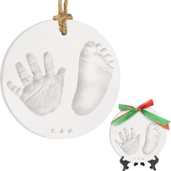 - Large 6.2” Baby Ornament - Feature both your baby’s hand and footprint on a single ornament. Customize it with your baby’s name, and date of print and paint it the way you like. Decorate in the living space or on Christmas trees.