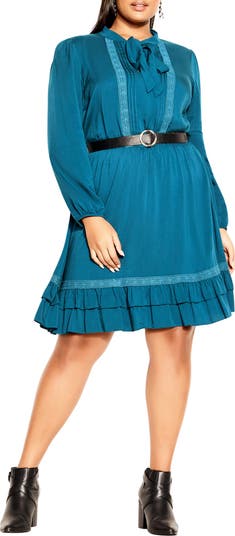 Make an unforgettable impression in this dress featuring fabulous lace and pleats and an adjustable belt that highlights your waist.