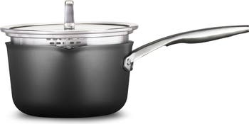 I bought this saucepan, along with the 2.5 qt. saucepan, almost two months ago. Although both pans are pretty, and heat up quickly, the handles get dangerously hot. I have tried using silicone sleeves on the handles, but still have to be very careful. I do not recommend either of these saucepans, due to the heat transfer to the handles. Note that I have not had this problem with previous Calphalon products.