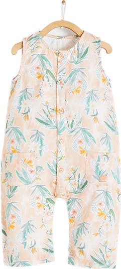 Indira cotton playsuit its perfect for summer! This sleeveless and footless playsuit features a vibrant orange washed color with a beautiful allover print of flowers. Practical details include two front pockets, buttons from the neckline to the waist, and snap closures in the crotch area for easy diaper changes. A comfortable and stylish choice for your little one!
