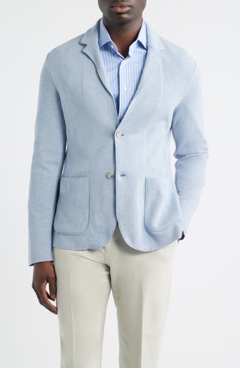 A soft, breathable knit made of cotton enhances the relaxed comfort of a sport coat that's crafted with minimal detailing and styled to elevate any casual look.