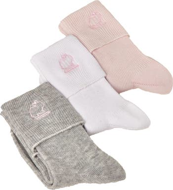 Set Of 3 Stylish Socks Featuring A Logo Cuff. Perfect For Keeping Your Baby'S Feet Warm And Cozy. Ideal For Everyday Wear, Adding A Touch Of Charm To Any Outfit. The Soft And Stretchy Fabric Ensures A Comfortable Fit For Your Little One.