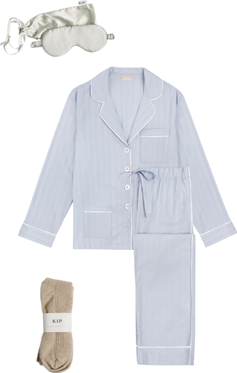 Treat a loved one to the full self-care experience with a 100% cotton long pajama set and array of sleep accessories. Gift set contains Premium Cotton Pajama Set, Pure Cashmere Sleep Socks, and Mulberry Silk Sleep Mask.