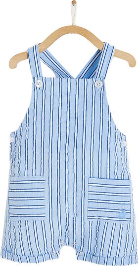 Keep your baby cool, comfortable, and stylish with our Nimes Shortall! This adorable romper features adjustable straps with a button closure at the chest, comes with side buttons, and snap closures at the crotch for easy diaper changes. Made from breathable fabric, it boasts a charming light blue and white stripes design with dark blue trim. Two front pockets add a touch of flair to this must-have summer essential!