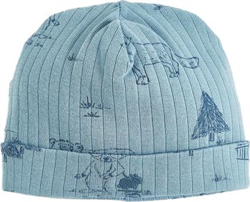 Introducing Our Super Soft And Adorable Cotton Beanie! This Beanie Features A Cozy Ribbed Fabric In A Lovely Shade Of Blue, Complemented By A Navy Blue Print With Forest Elements. Keep Your Little One Warm And Stylish With This Charming Addition To Their Wardrobe!