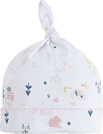 Introducing Our Classic White Beanie With An Enchanting Twist! This Beanie Features A Playful Knot Detail At The Top And A Vibrant Print From Our Collection, Showcasing Adorable Pink And Blue Details Such As Owls, Swans, Squirrels, Flowers, Trees, And More! Keep Your Little One Looking Stylish And Sweet With This Charming Addition To Their Outfit!