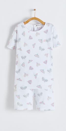 This adorable snug fit short-sleeve pajama set features a comfortable design with elastic waist. With a front pocket and buttons, it's easy to dress and undress your child. Made from soft Pima cotton, this set ensures comfort and softness for a peaceful night's sleep. The print features adorable butterflies allover.