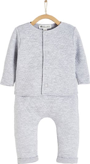 Keep your little one warm and stylish with this practical metalasse set. Made from ultra-soft Pima cotton, it features a textured exterior, snap buttons along the cardigan's length, and an elasticized waistband on the pants.