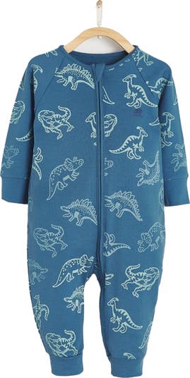 Footless Rex Pajama, With Zipper. Navy Blue Fabric Base With Super Cool Dinosaur Prints Allover. Ideal Pajama For Easy Changing. Made Of Cotton Fabric To Keep Your Baby Comfortable All Night Long!