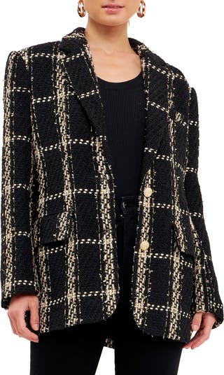 Classic tweed meets oversized tailoring in this boxy plaid blazer that's both old-school and contemporary.