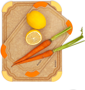 - sided, reversible design allows you to easily switch sides for different food types, enhancing both hygiene and convenience. Heat Resistant & Dishwasher Safe Withstands temperatures up to 350°F, allowing it to double as a trivet to protect countertops from hot pots and pans. It is maintenance-free, dishwasher-safe, and easy to clean. Limited Lifetime Warranty Designed for durability, this cutting board set comes with a limited lifetime warranty, making it a must