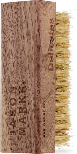 A handsome wooden handle tops a well-made shoe brush featuring hog-hair bristles for high-caliber cleaning.