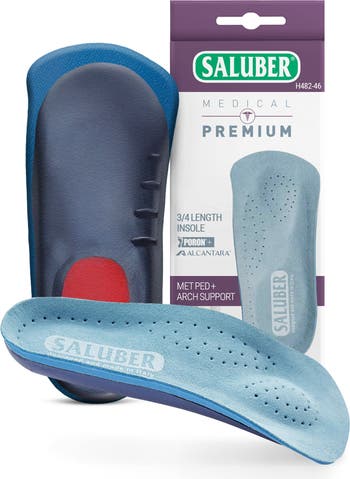 A soft Alcantara© top cover and shock-absorbing PORON® cushioning bring breathable comfort to this supportive three-quarter-length insole designed with targeted arch and metatarsal support.