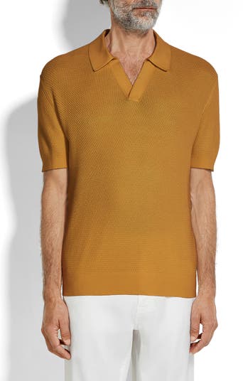 A soft thermal texture and premium cotton construction highlight the Italian fashion house's elevated-sportswear aesthetic in this capsule-essential polo-sweater.