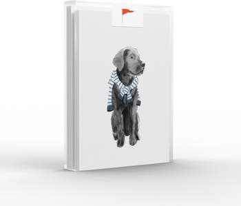 This 8-pack of greeting cards is elegantly illustrated by artist Ingrid Ramus, founder and owner of the Ramus & Co brand. Artwork features a black lab with a scarf. All greeting cards are made in the USA on heavyweight uncoated and locally-sourced and manufactured card stock. Each card is accompanied by a hand-embossed envelope made with heavyweight 95lb paper and a peel-and-stick flap - no licking envelopes here! All Ramus & Co. greeting cards are printed on FSC and SFI certified paper sourced from a regional mill that harnesses 66% of its energy from on-site sustainable sources, such as emission-free hydroelectricity and biomass co-generation from wood waste. All 8 greeting cards come packaged as a boxed set. Husband-and-wife team Calvin and Ingrid Ramus founded Ramus & Company in 2019, in New England, USA. Ingrid, the creative designer behind the brand, originates from Mexico, where she cultivated her skills in fashion and textile design. Drawing from her unique and inquisitive perspective on preppy style, Ingrid prolifically designs whimsical yet classic stationery and lifestyle items.