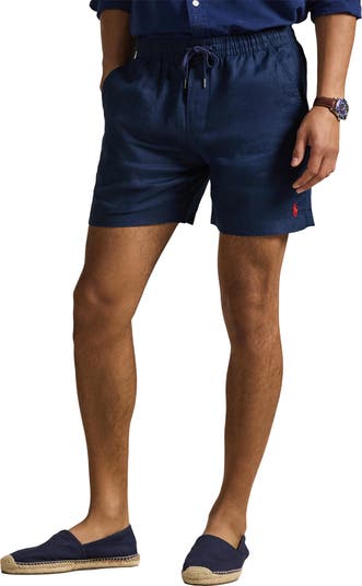Iconic since its '71 debut, an embroidered polo rider hints at the preppy heritage of these ultralightweight linen shorts with a classic drawstring waist that keeps the look relaxed yet polished.