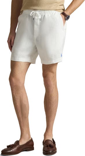 Iconic since its '71 debut, an embroidered polo rider hints at the preppy heritage of these ultralightweight linen shorts featuring an adjustable drawstring waist for a customized feel.