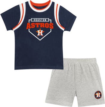 Keep your kiddo's love for the Houston Astros strong by grabbing them this Loaded Base set. It includes a classic crew neck T-shirt and shorts that stretch to adjust to their perfect size. Best of all, the distinct Houston Astros graphics on both pieces make for a spirited outfit.