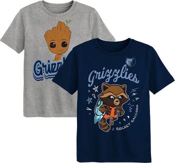 Bring the excitement of the Memphis Grizzlies and the Guardians of the Galaxy together with this fun two-piece T-Shirt set. One shirt features Groot and the team wordmark, while the other stars Rocket Raccoon alongside bold team graphics. This set is perfect for your little one to rep their favorite team and Marvel characters at the same time.