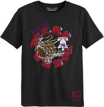 Ensure your young fan can rep the Philadelphia 76ers all season long with this In The Net T-Shirt. Designed by Mitchell & Ness, it features a distressed team graphic printed on the front for a bold look that's perfect for game days. This tee is finished with a classic crew neck cut and crafted from soft cotton fabric for premium comfort when cheering on the Philadelphia 76ers.