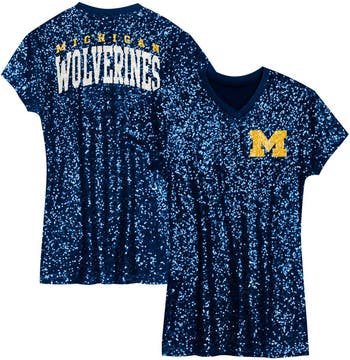 Little fans can add shimmering team spirit to game day with this Michigan Wolverines Sequin V-Neck Dress. It features dazzling sequins all over and the team name in sequin details across the back. With an embroidered logo patch on the left chest, this Michigan Wolverines dress draws attention to their growing fandom.