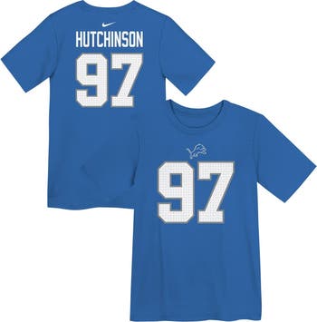 Preschool Nike Aidan Hutchinson Blue Detroit Lions Player Name & Number T-Shirt