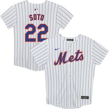 Get your young fan ready to cheer on their favorite player patrolling right field in Flushing, Queens with this Juan Soto New York Mets Home Game Jersey from Nike. This replica jersey is inspired by the on-field uniform, featuring heat-applied silicone graphics on the front and screen-printed details on the back for a look that's sure to stand out. Thanks to its lightweight, breathable polyester construction, this jersey will keep your kiddo cool and comfortable whether they're at the ballpark, watching from home, or remaining patient in the batter's box just like Soto.
