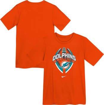 Let your little one showcase their team spirit in this Miami Dolphins Icon Legend Performance T-Shirt from Nike. Its lightweight design ensures all-day comfort, whether they're playing in the backyard or cheering on the Miami Dolphins. The screen-printed football graphic, featuring the team's wordmark and logo, boldly displays their team pride.